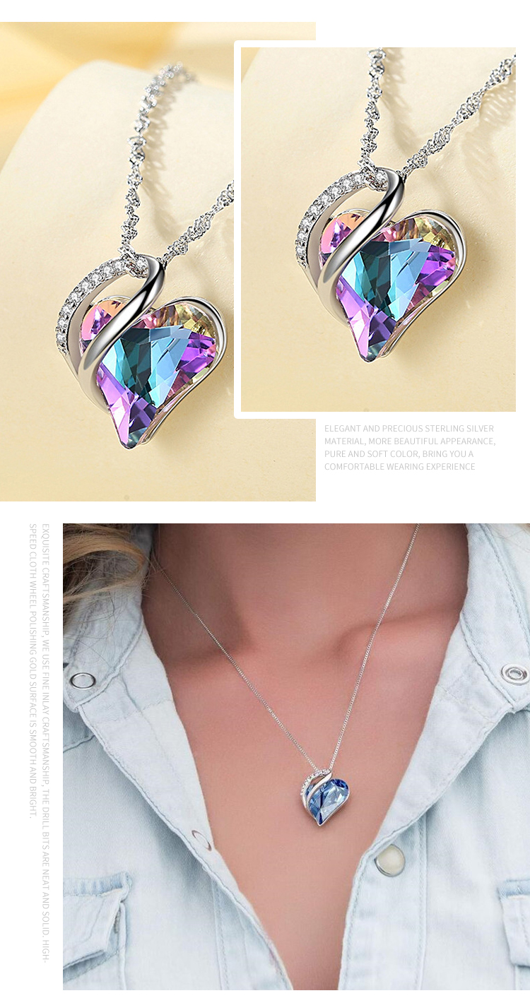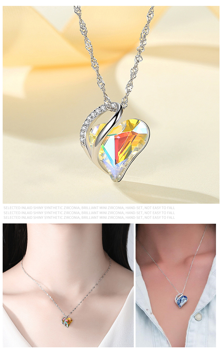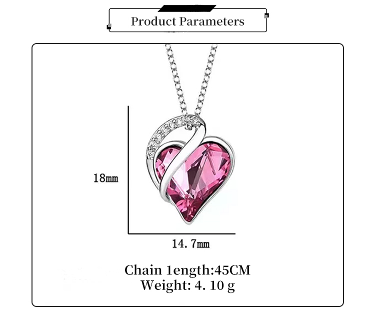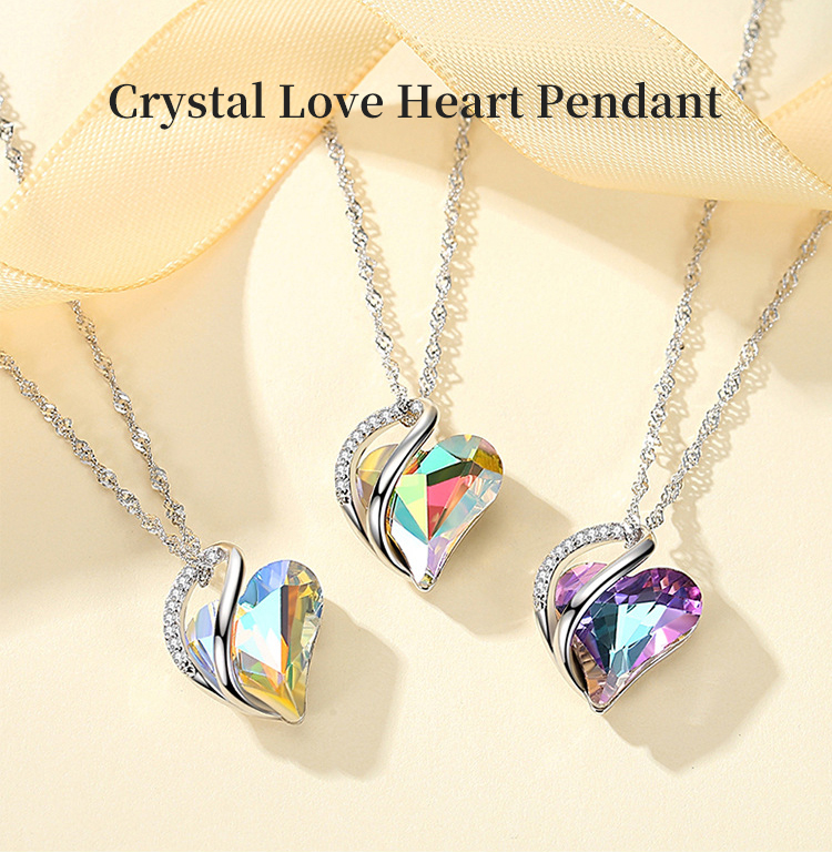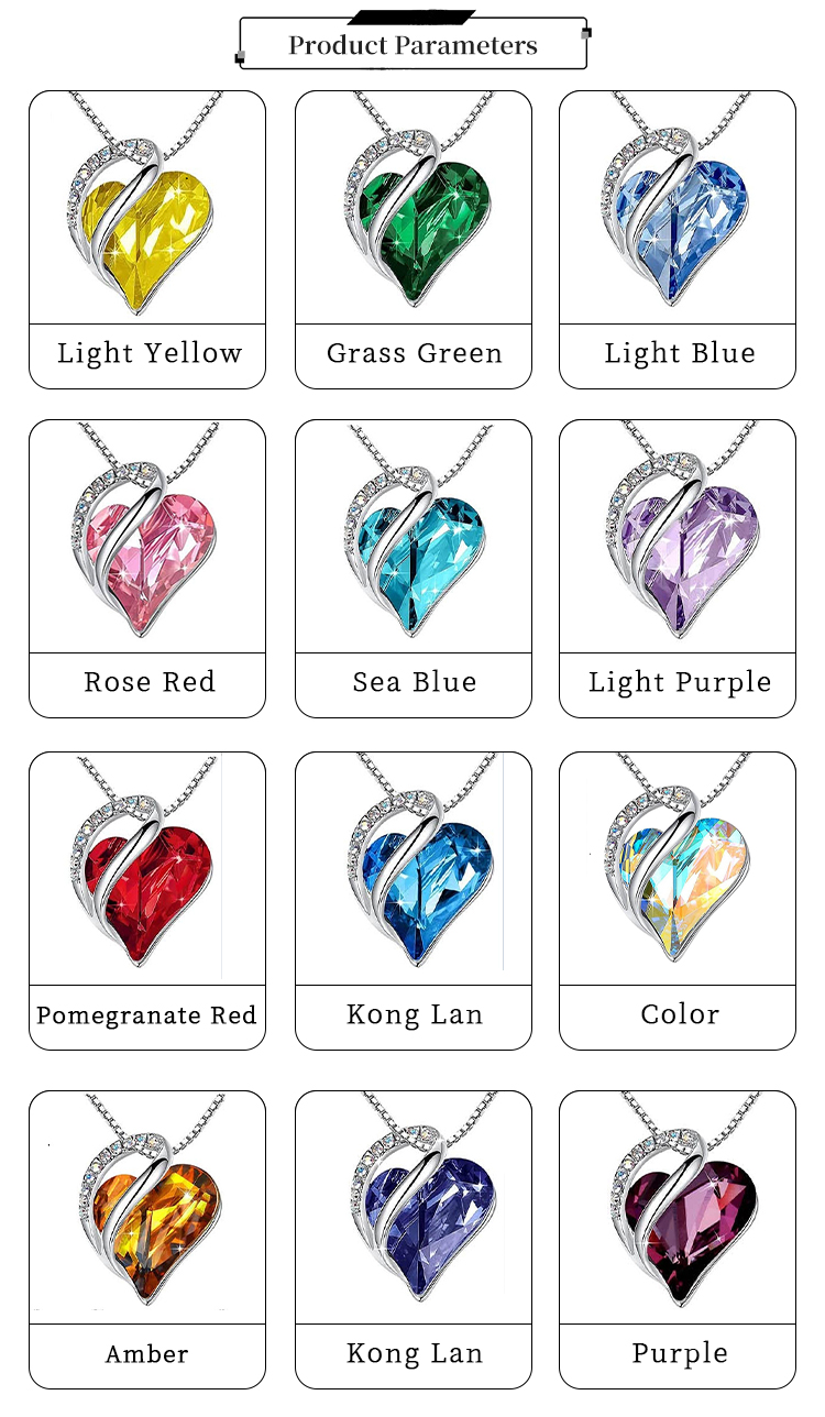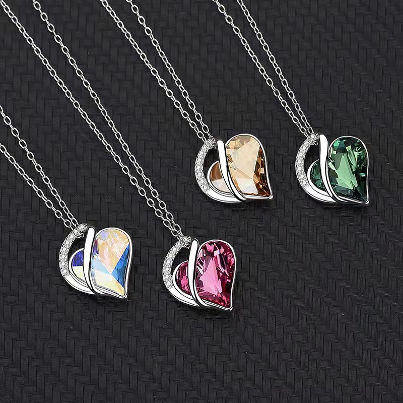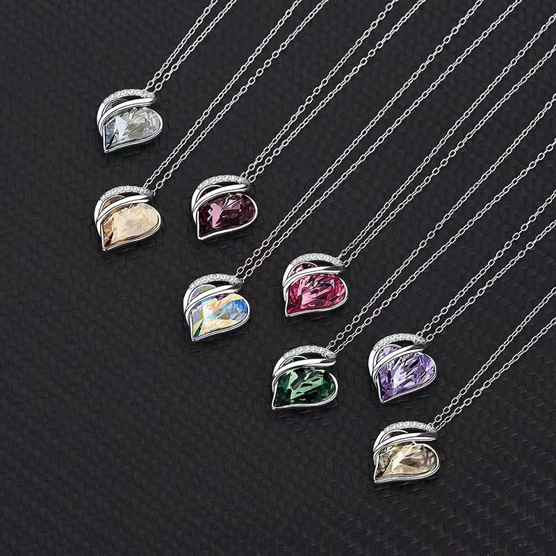 Love Heart Pendant Crystal Rhinestone Birthstone Jewelry Necklace