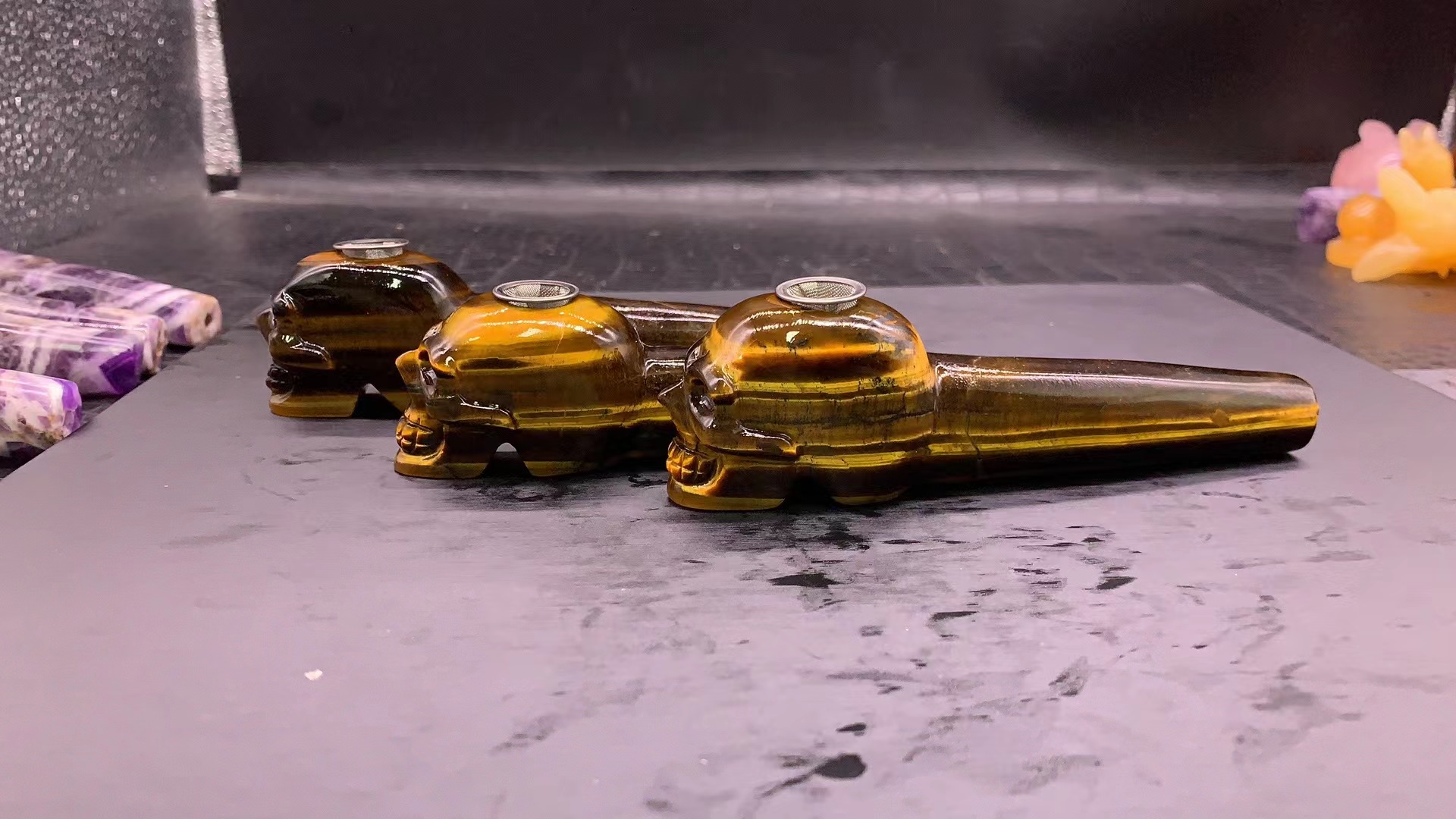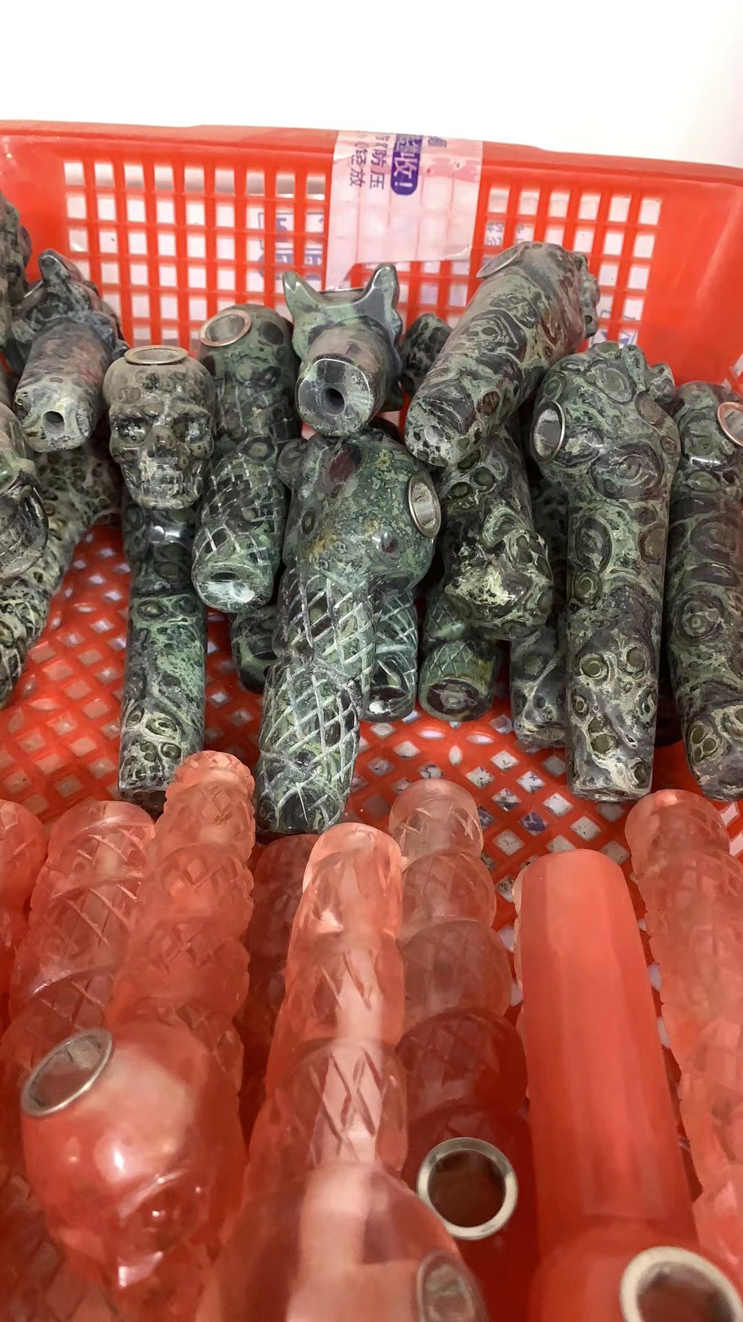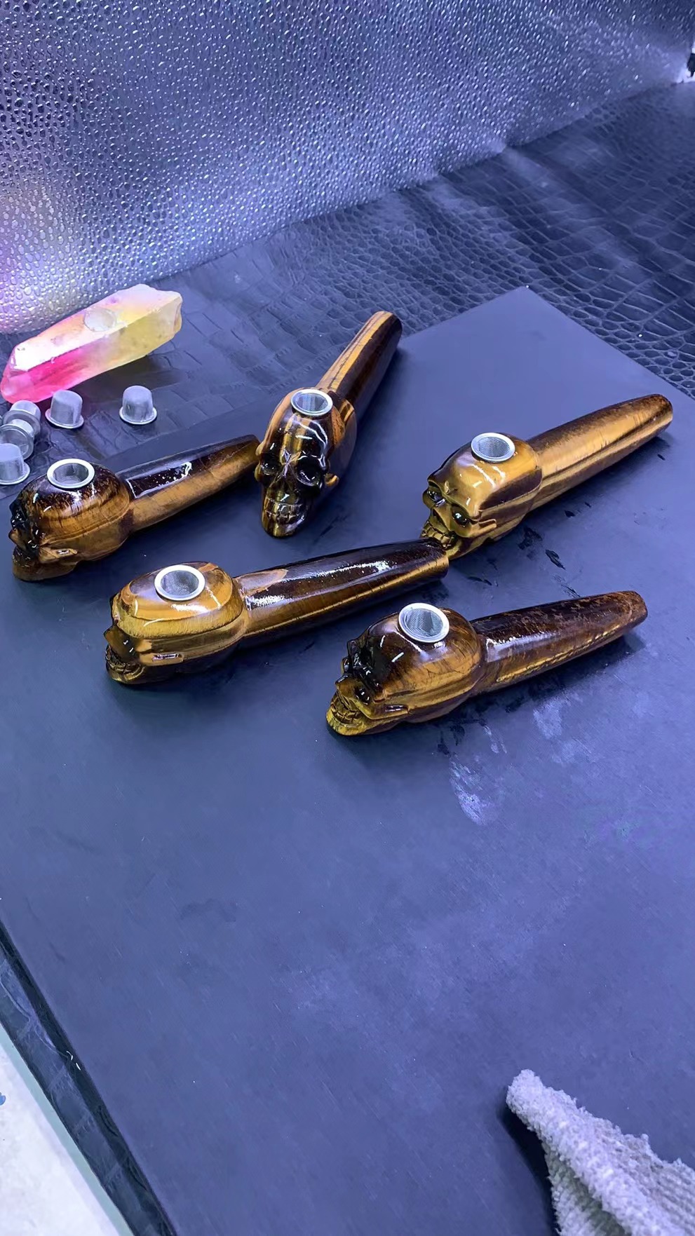 Carved Crystal Smoke Tobacco Pipes,Natural Healing Stone Skull Carving Crafts