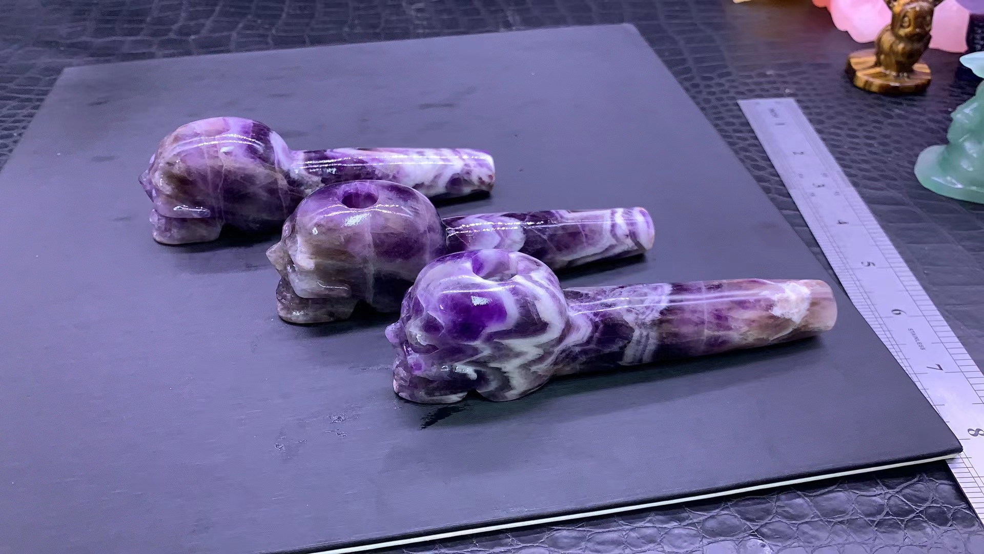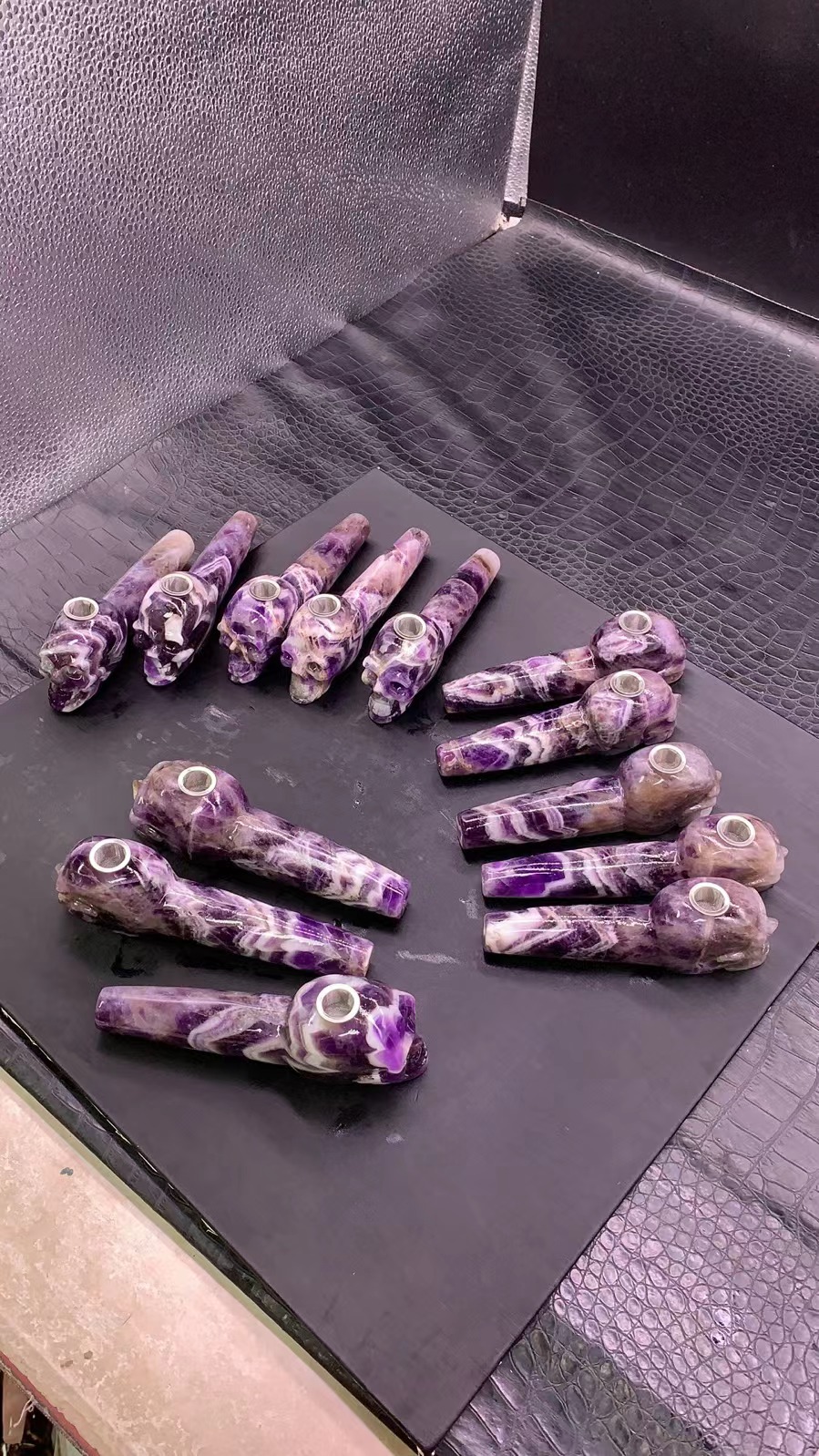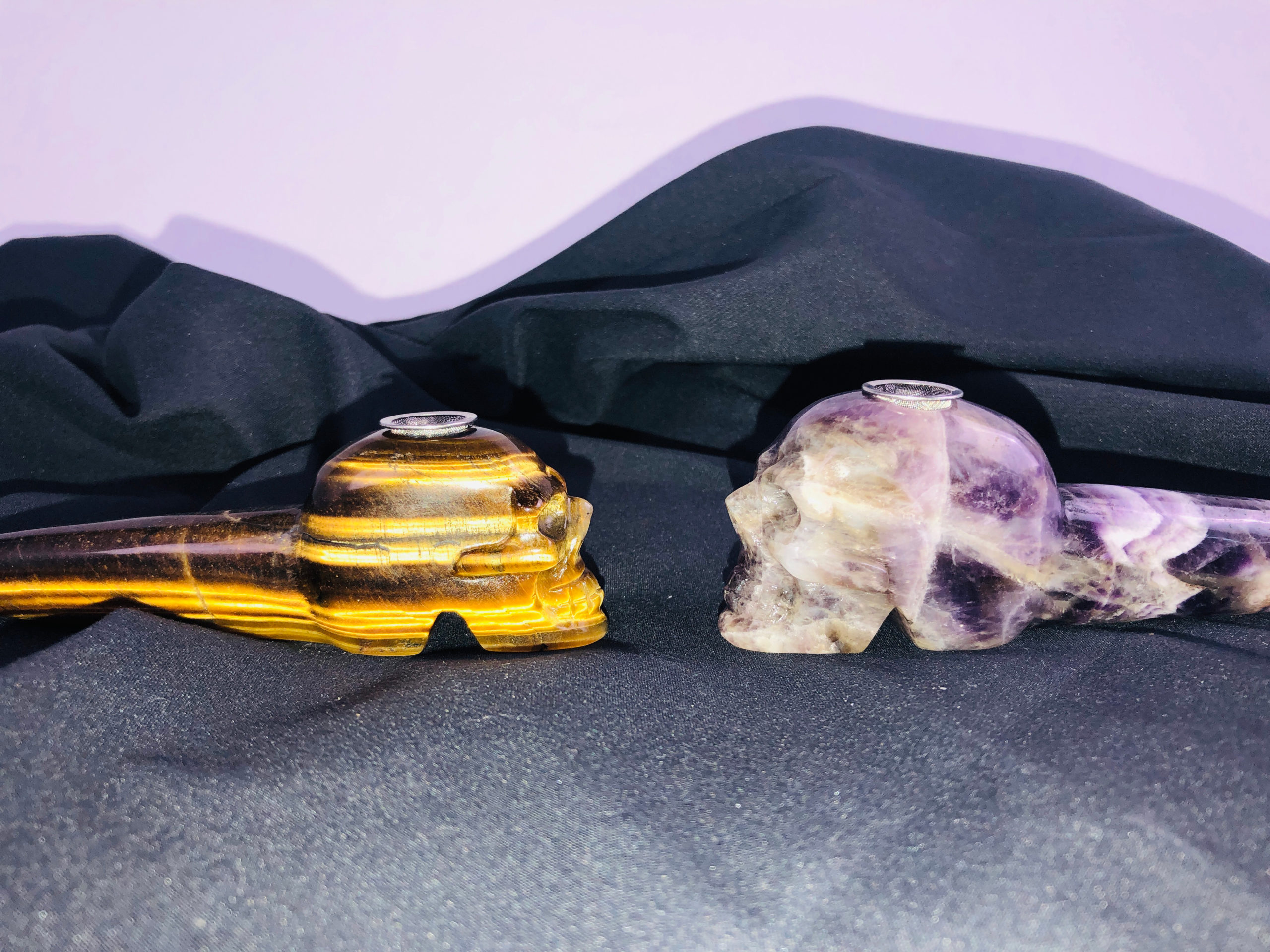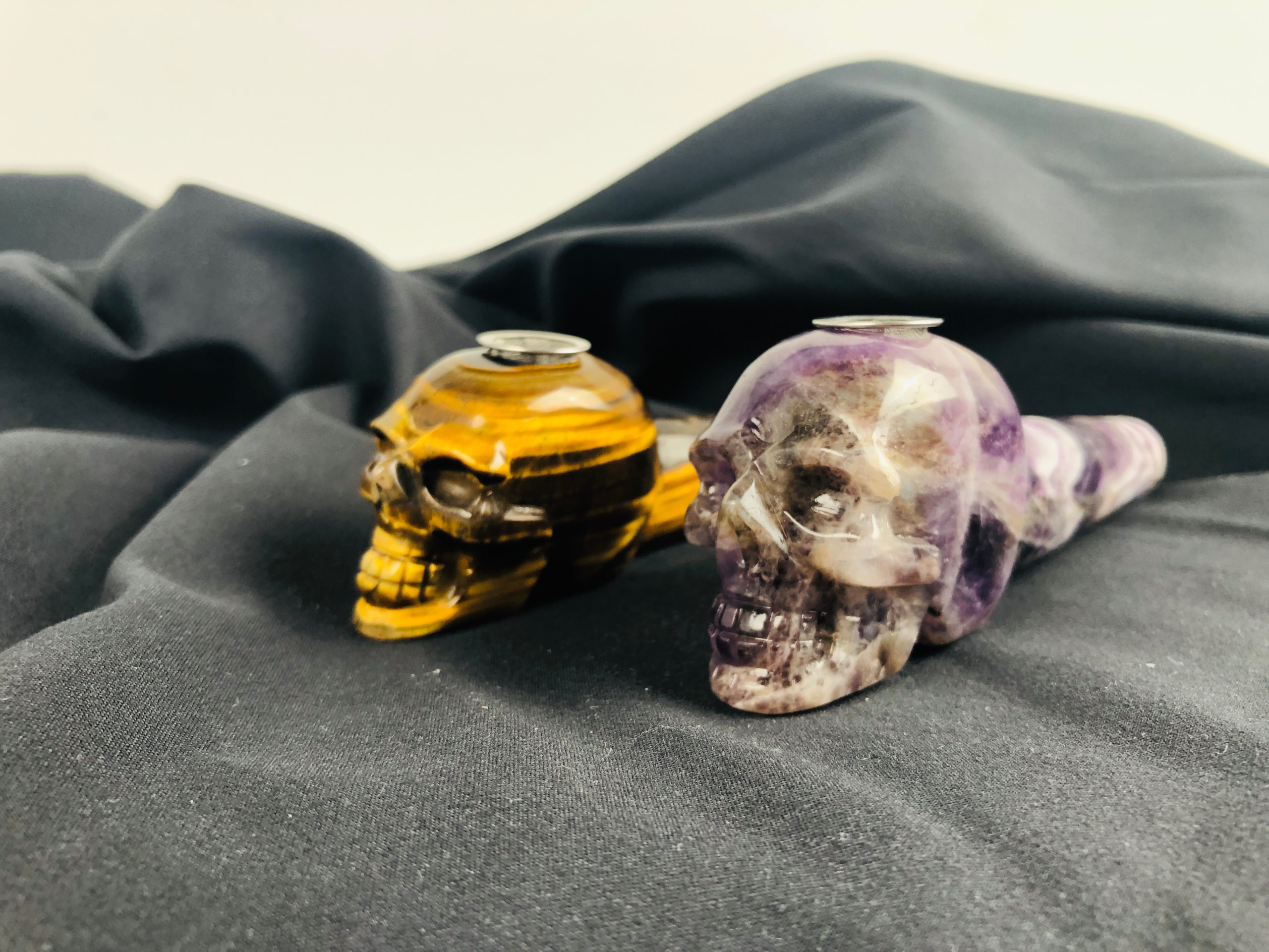 Carved Crystal Smoke Tobacco Pipes,Natural Healing Stone Skull Carving Crafts