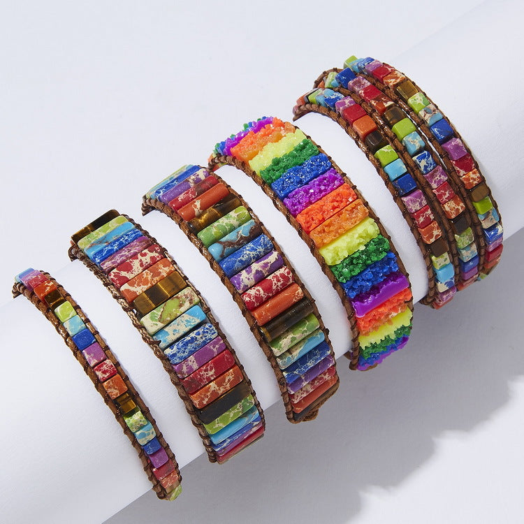 Creative Tube Beads Leather Wrap Bracelet Couples Bracelets Jewelry Natural Stone Handmade Multi Color Chakra Bracelet